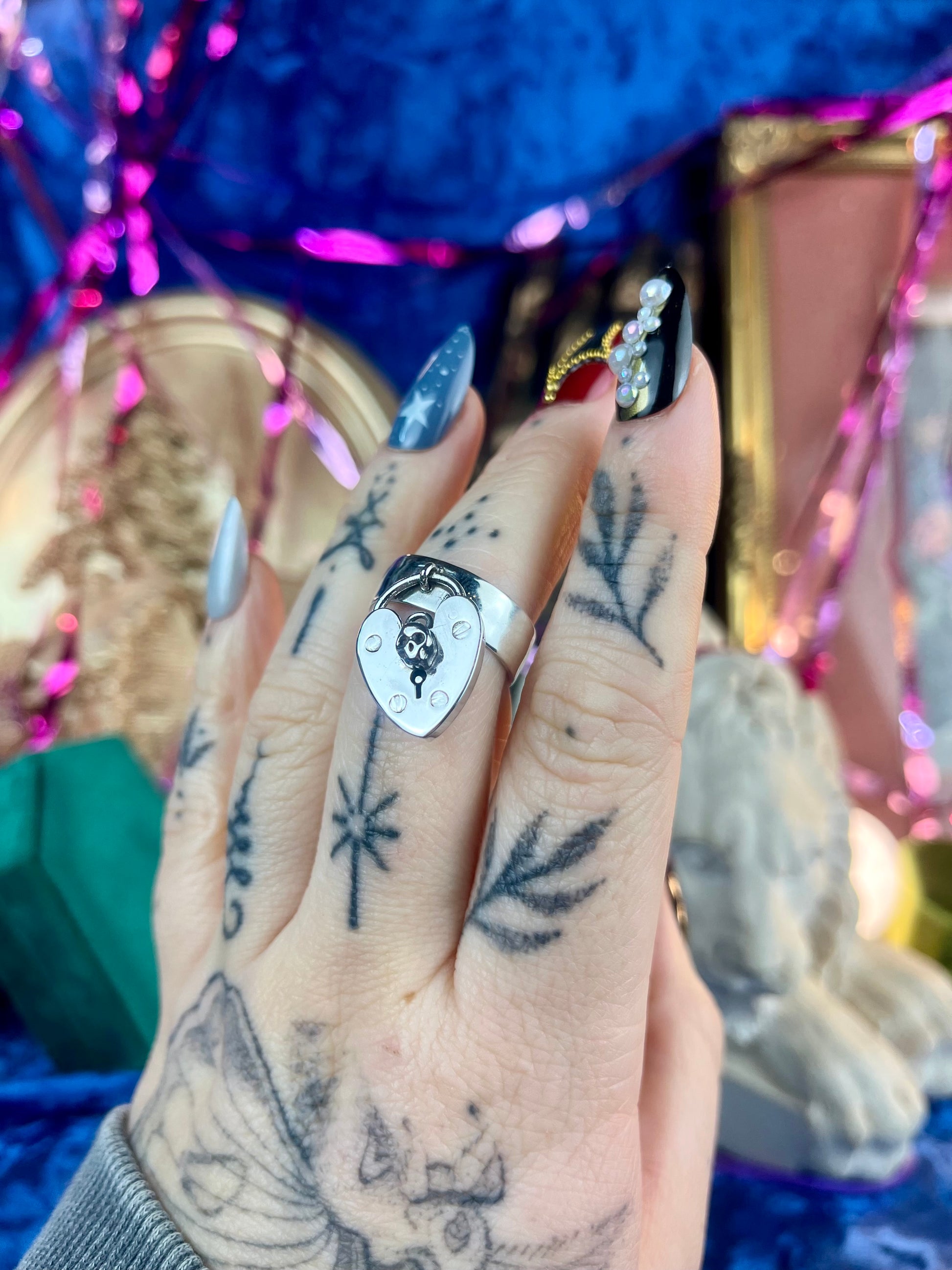 Skull Lock Sterling Silver Lock Ring
